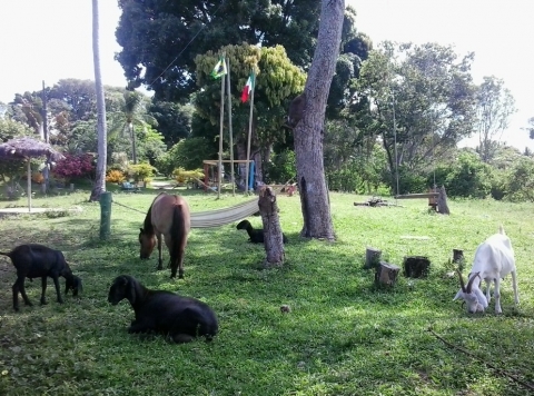 Um lugar para descansar, pensar , respirar, meditar , oxigenar a sua mente e o seu pulmão, um lugar onde o cheiro da grande floresta tropical se mistura com a brisa do mar, um lugar onde pode beber a água do minadouro da fazenda mesmo, que ajuda a limpar e purificar o seu organismo, água natural cristalina, desintoxicante, diuretica. Frutas como tangerina, manga, limão, graviola, ovo fresco de quintal, pão de amendoin, inhame, aipim, iogurte, todos da própria fazenda mesmo. Tudo natural e orgânico.